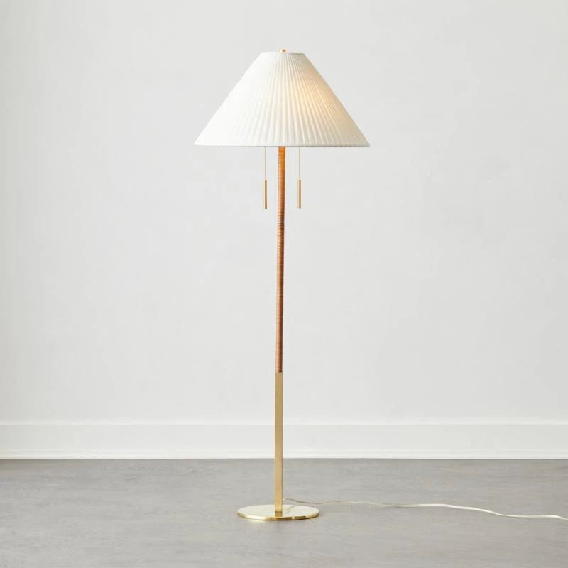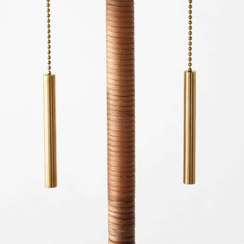 - Solid polished unlacquered brass base with natural cane wrap