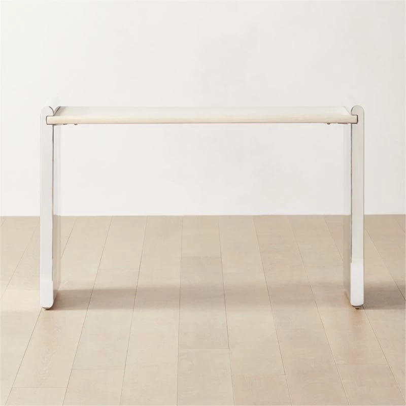 - Crafted with high-quality stainless steel and a smooth white wood top, this desk offers a perfect blend of style and functionality for any office environment.