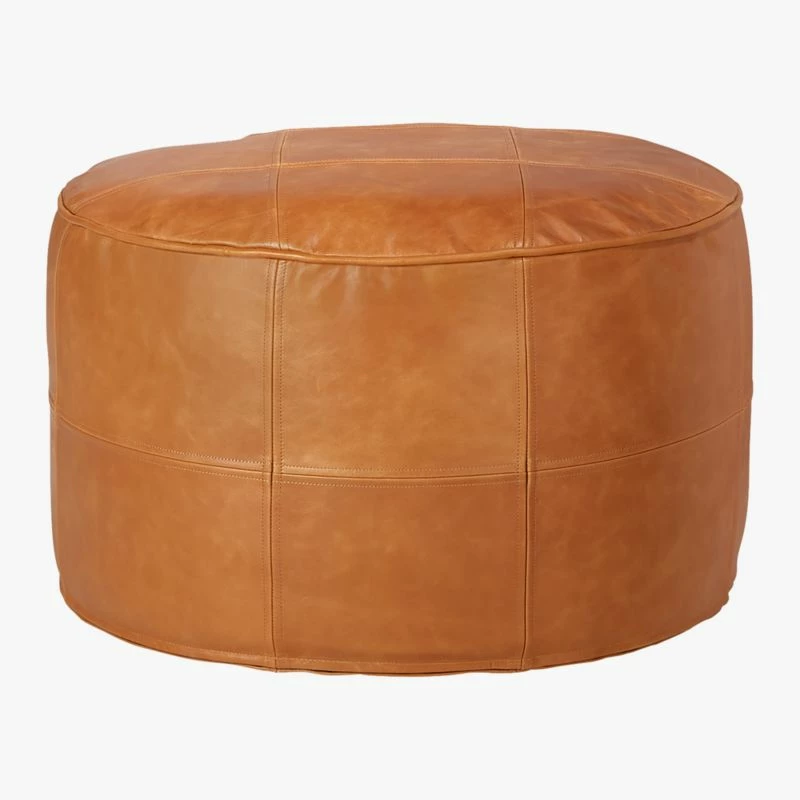 - Crafted with premium saddle leather, this Round Ottoman-Pouf adds a touch of elegance to your living room dรฉcor.