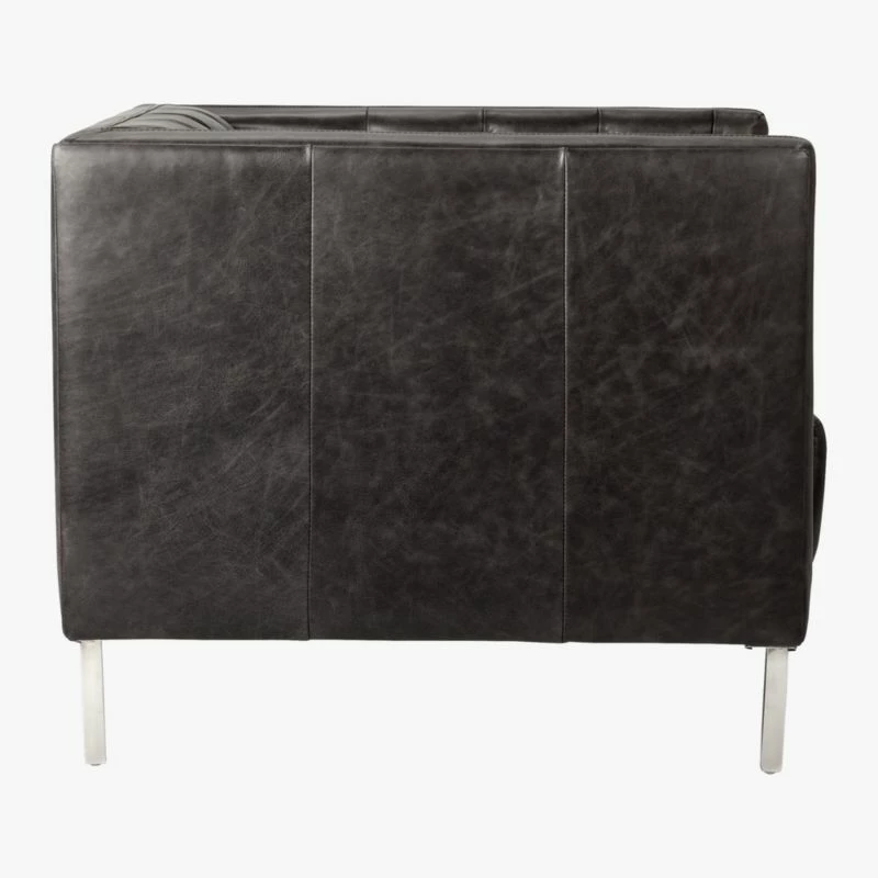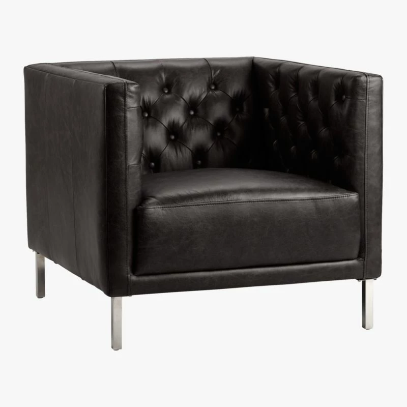 - The Savile Bello Black Leather Tufted Chair combines elegance and comfort, making it a perfect addition to any living room. Its premium black leather and tufted design exude sophistication.