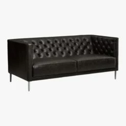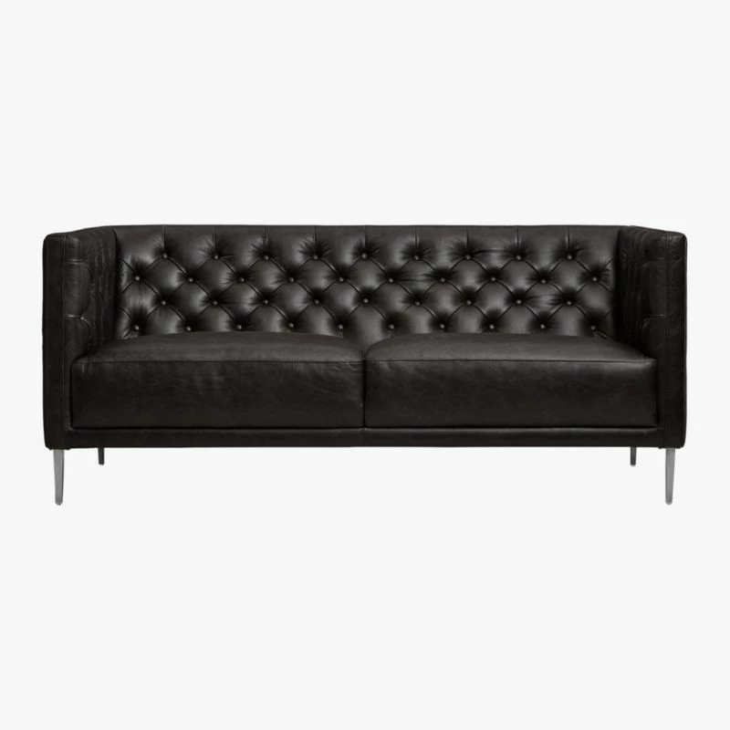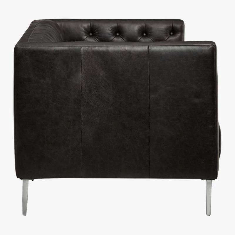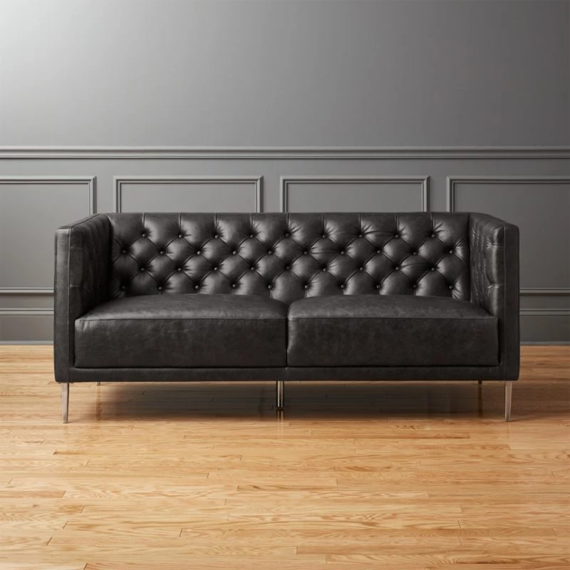- Elevate your living space with the Savile Leather Tufted Apartment Sofa. Its sleek, modern design and premium leather upholstery make it a perfect centerpiece for any living room.