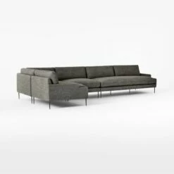 - Enhance your living space with the Scalino 4-Piece L-Shaped Grey Sectional Sofa. This modern sofa set includes a left arm chair, providing ample seating and a sleek design.