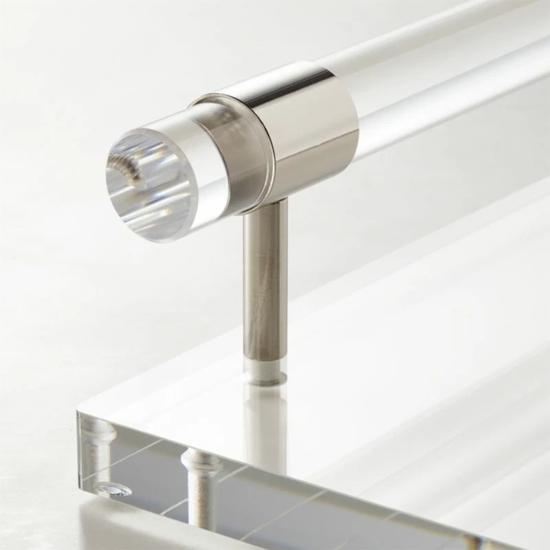 - The minimalist design of the Theron Acrylic Tray complements any decor, from contemporary to traditional, adding a touch of elegance to your space.