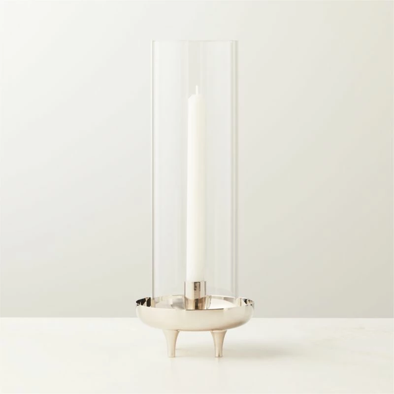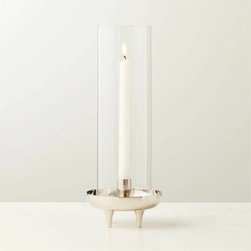 - Enhance your home decor with the Vetro Polished Stainless Steel and Glass Hurricane Candle Holder. This elegant piece combines durability and style, making it a perfect addition to any room.