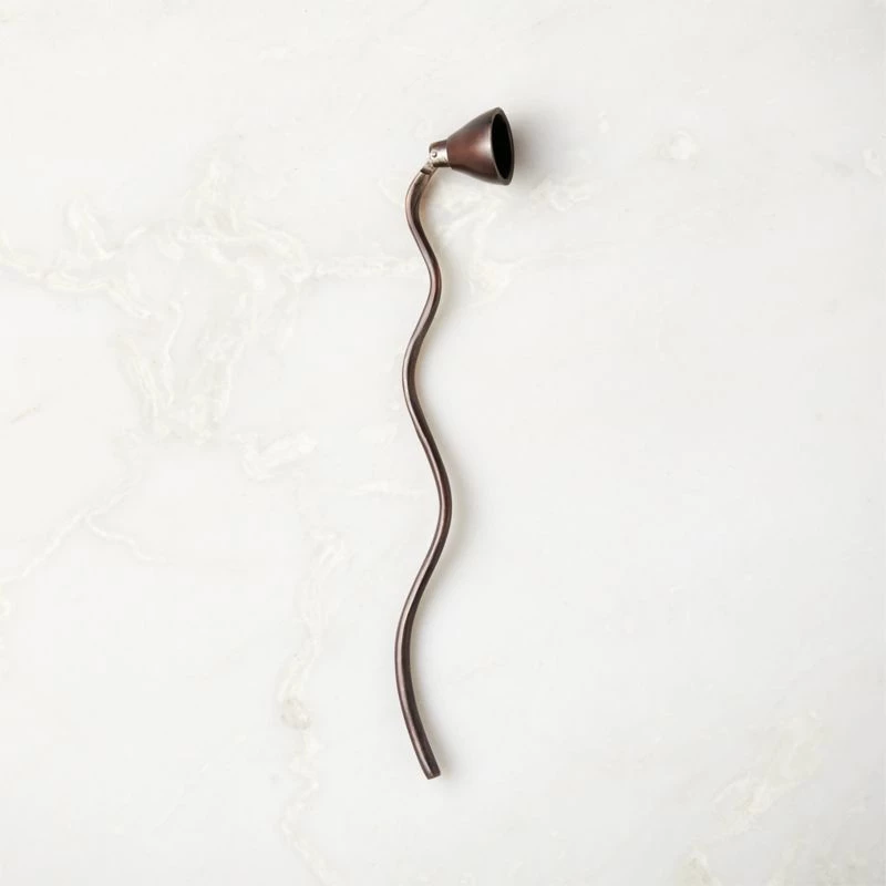 - The Waves Blackened Brass Candle Snuffer is a beautifully designed home accessory that combines functionality with elegance. Its blackened brass finish adds a touch of sophistication to any room.