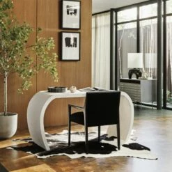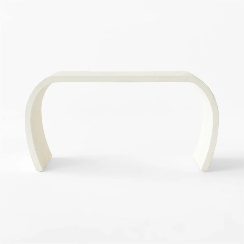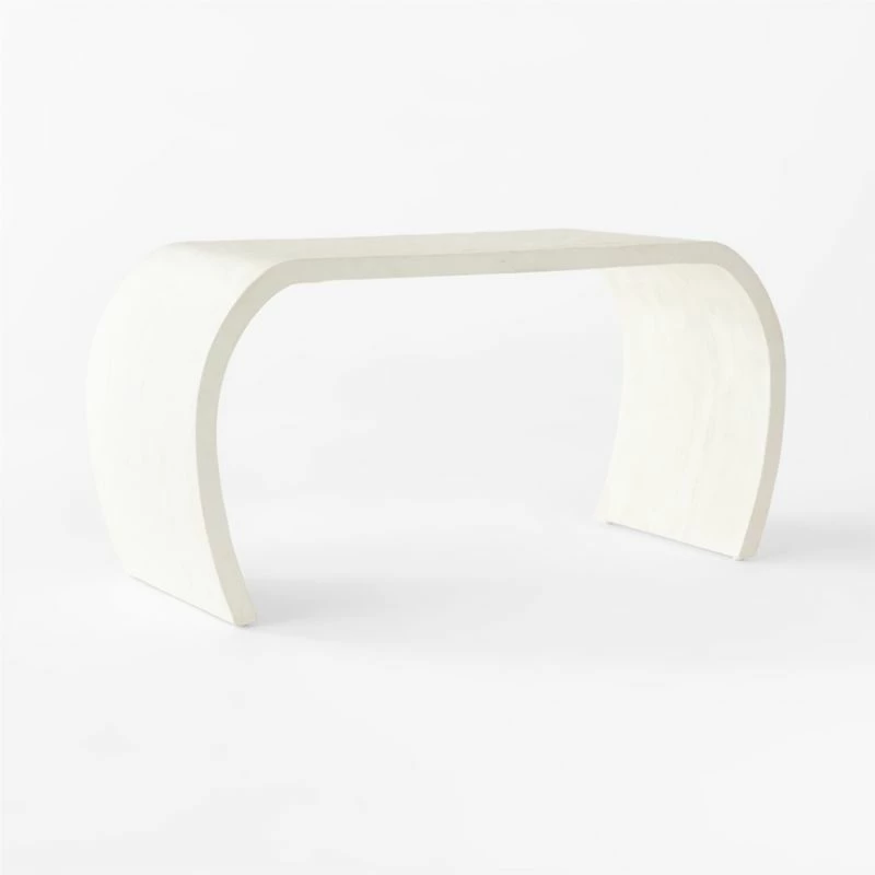 Soft curves push against hard edges creating a harmonious juxtaposition you might expect to find in a sculpture gallery. A unique cement mixture gives the top and sides a plaster-like finish while the inside texture resembles that of a plaster relief. Organic yet refined, this is one of those pieces that instantly elevates any space. We love it as a statement desk or console. CB2 exclusive.